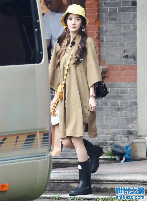 带着渔夫小帽,穿着雨鞋,身上挎着小包,这样的杨幂看起来就像是一个去上幼儿园的小朋友一般活泼又可爱,看起来少女感十足。