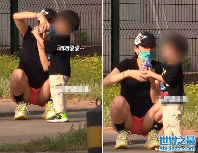 章子怡素颜带娃出游!蹲路边喂孩子喝水,裤子超短一双白嫩腿抢眼 ...