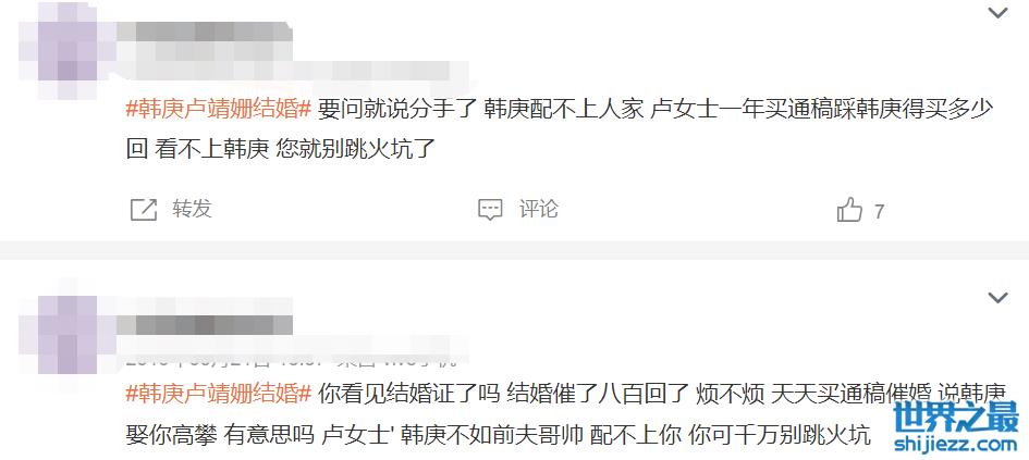 但这显然无济于事。许多人还是一致认为:韩庚配不上卢靖姗。