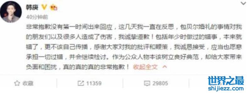 但韩庚却一直当做无事发生。并且他的团队对于这些绯闻也一向敏感至极,以至于韩庚大名鼎鼎的“罢录门事件”都是因此而来。