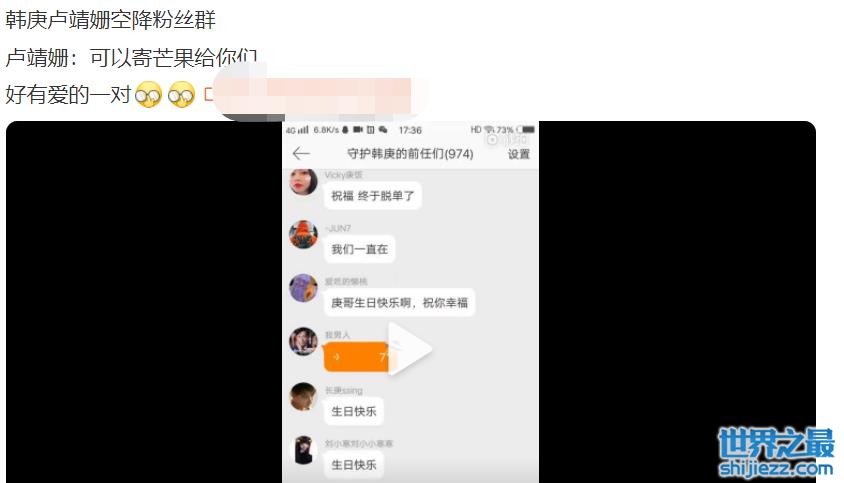 甚至还携手出现在韩庚粉丝群撒狗粮。