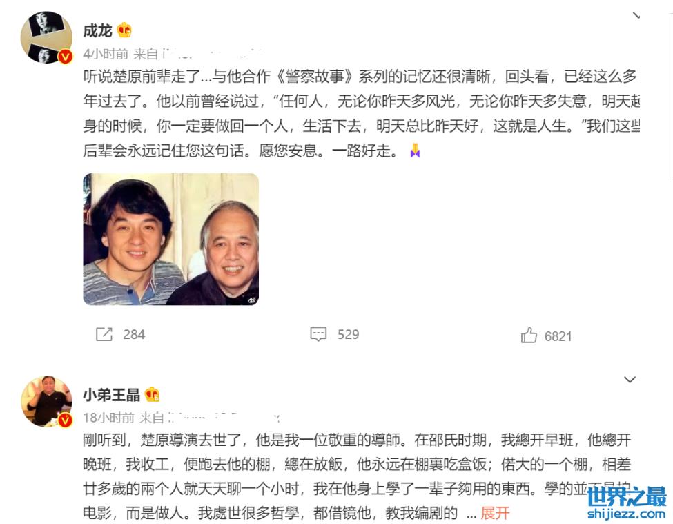 楚原在港圈的地位超然,当时他离世的消息一出,成龙和王晶等大牌明星都发文哀悼。