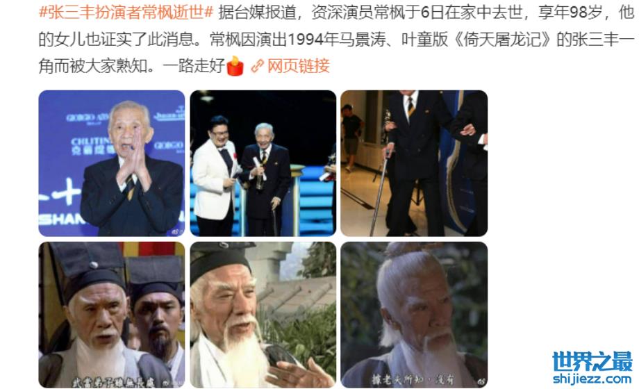 而2月初,老戏骨常枫也遗憾离世。据常枫女儿透露,老人家是在睡梦中离世的,走得很安详,享年98岁,算是喜丧了。