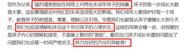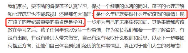 但是张亮也在文中提到,在什么年纪就要做什么样的事,而现在儿子最重要的事情肯定是学习,自己作为家长会对孩子的动向都了解清楚。