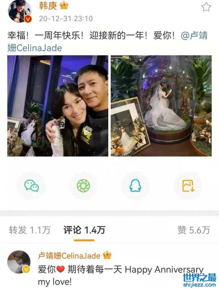 卢靖姗生日,韩庚每年都会准时准点送上祝福。