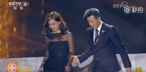两个人在台上商业互吹,下台的时候,韩庚很绅士地扶着卢靖姗下台。