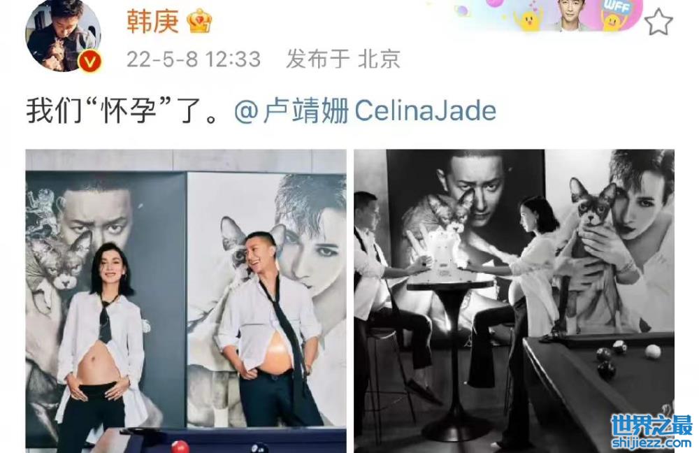 卢靖姗和韩庚晒出孕肚官宣怀孕,