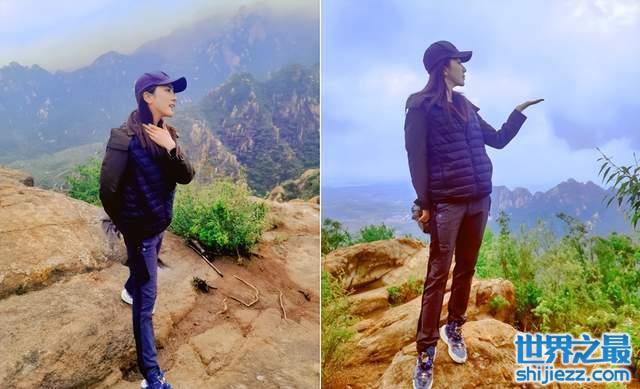 李思思还站在悬崖边的岩石上拍下了照片。从照片中可以看到山峰的高耸,但李思思丝毫没有畏惧这样的高度,走到了悬崖边观赏这波澜壮阔的景象。她还站在岩石上摆出了各种各样的造型,并且不断赞美这如诗如画的靓丽风景。
