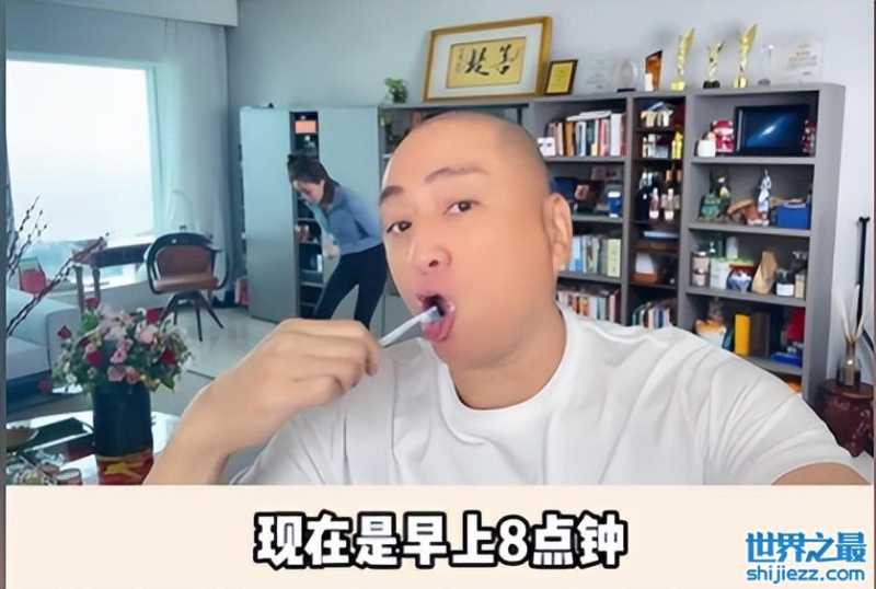 如今63岁的汤镇业将生活的重心转移到了家庭上,汤镇业非常喜欢记录生活。视频中他记录的是某个早晨他与老婆的时光。画面中汤镇业朝着镜头刷牙,一只手拿着手机,边刷牙边告诉大家老婆早晨七点便开始运动。值得关注的是汤镇业家中有一个大书柜,上面摆放着一排奖杯,旁边还立着一幅字,看起来十分有老艺术家的风范。