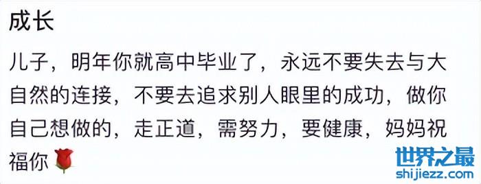 龚琳娜配文称“永远不要失去与大自然的连接,不要去追求别人眼里的成功,做你自己想做的”。字里行间透露着龚琳娜对儿子的期许,也看得出龚琳娜对儿子的教育观是希望他成为一个独立坚强的人。