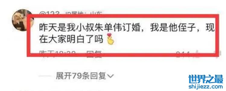 据悉,这个100多万粉丝的账号,是小伟侄子在管理的,这位侄子还回复了不少网友的评论,还称这次订婚的婶子,会和小伟好好过日子。