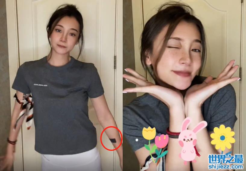 当天唐菀站在房间里跳着手势舞,扎着丸子头的她显得十分可爱。值得注意的是,唐菀的手臂上系着一条丝巾,不知道是不是为了遮挡自己的纹身。但随着舞蹈动作,丝巾有些往下掉,唐菀的纹身也若隐若现,反而更加引起了大家的注意。