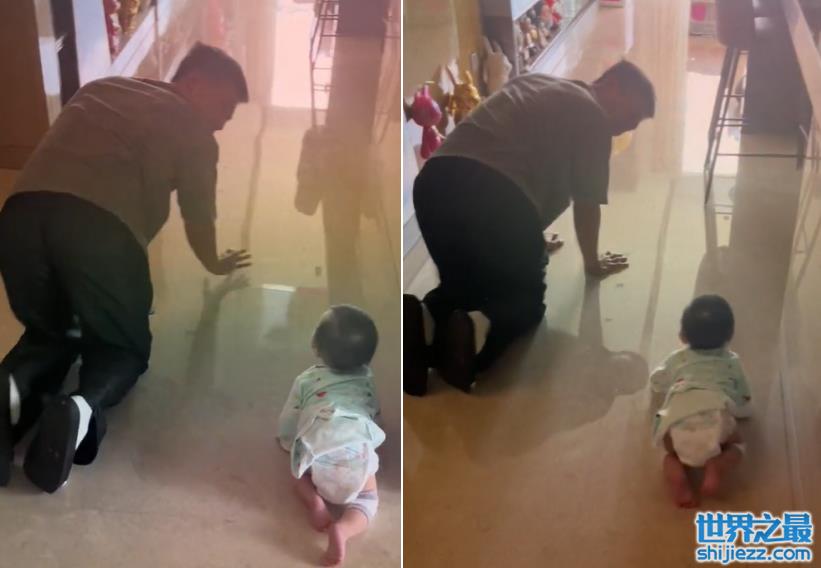 在家的时候,为了鼓励女儿多多练习爬的姿势,杜淳还亲自做起了示范。只见杜淳双膝跪地趴在地上,边往前爬还边回头注意女儿的情况,画面十分温馨。女儿看见爸爸在一旁似乎起了兴致,一边抬头看爸爸,一边爬得非常卖力,显得格外可爱。