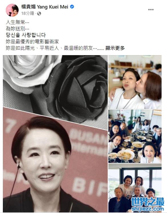 另外,鉴于姜受延生前成就非凡,在国际影坛上都享有一定赞誉,许多未能到现场的艺人也纷纷发文予以悼念,其中就有影后杨贵媚,据悉此前姜受延曾以釜山影展执行主席的身份参加活动,借此机会与杨贵媚有过默契合作。