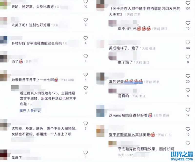 在偶遇古力娜扎的网友发出照片后,也是引得大家纷纷留言评论。说古力娜扎真的在人群中随手抓拍都是闪闪发光的大美女,而且又高头身比有好,穿平底鞋都这么高挑美艳。更是有网友夸古力娜扎身高容貌都是人间顶配,女娲也不管旁人都组在她一人身上了,这也太会夸了。