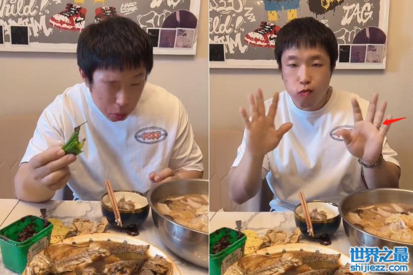 但在吃葱的时候,烧饼不知道是被噎到了,还是被辣到了,只见他挤眉弄眼,模样十分搞笑。在吃完一整根葱之后,烧饼显得心满意足,做起了各种各样的手势。在他嘚瑟的时候可以看到,他手上的婚戒十分显眼,真是幸福满满。