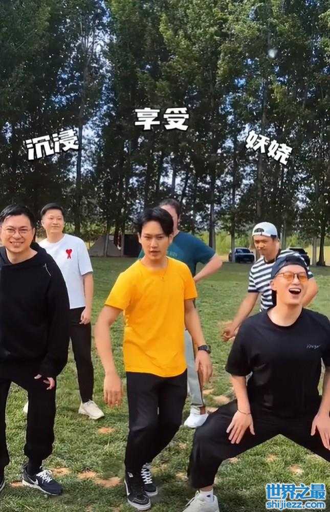 画面一转,窦骁与五个男性朋友来到了视频前。窦骁穿着宽松的黑色运动服反戴着帽子,戴着一副亮眼的黄色墨镜。窦骁蹲下站起非常灵活,跳起舞来的他姿势妖娆,张着嘴享受着舞蹈带来的快乐。