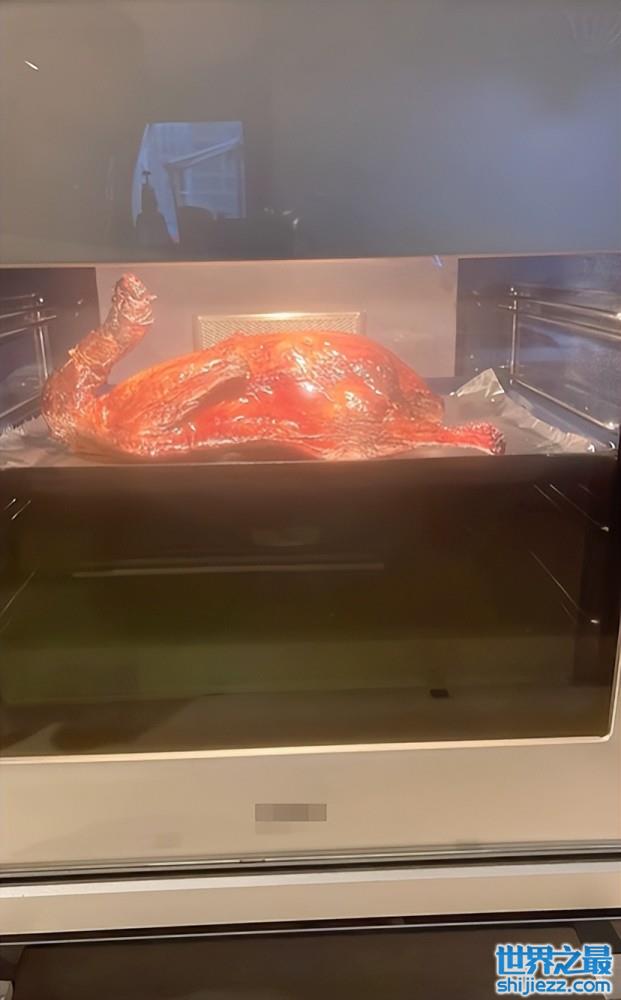 烤箱中的烤鸭色泽鲜艳,外皮看起来十分酥脆,而除了美味的烤鸭更值得我们关注的是李湘家中所用的烤箱。据了解这款烤箱是某奢侈品牌家居,价格高达四万五千元。