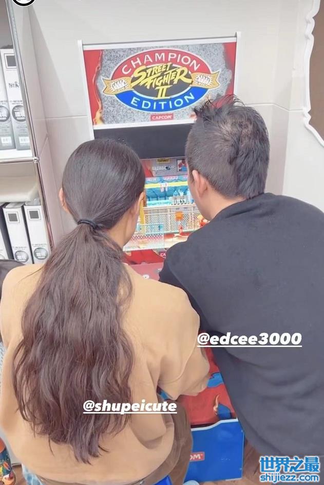 5月12日,秦舒培分享一组好友拍摄他们两口子在游乐场玩的画面,从图中可见,陈冠希好友在背后拍到有爱的画面,并手动@陈冠希秦舒培两口子。