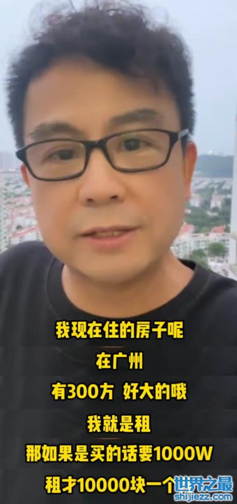 目前,他在广州租了一套面积为300平的房子,租金为一万元。他的理由是,买下300平的话需要上千万,但自己没有那么多钱,租房就挺好。