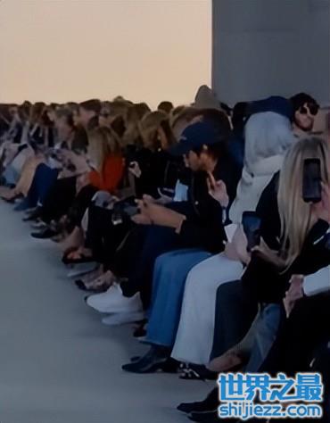 在谷爱凌上场时我们可以看到周围坐着的观众纷纷拿起手机进行拍摄。人群穿着各异,头发颜色也不尽相同,整个秀场充满包容开放的感觉。
