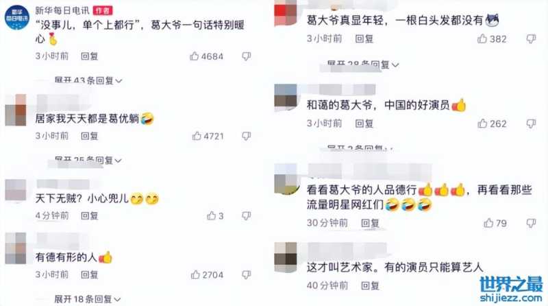这条视频下也引来了许多网友评论,说葛大爷可真是显年轻,一根白头发都没有。也有网友说着看见葛大爷就想起自己居家天天都是葛优躺。还有人为葛优的亲和点赞,说这样的人才叫艺术家,现在的年轻人们真该好好学习。