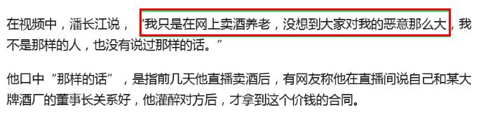 事后潘长江称自己从未说过此话,还称自己只不过是想在网上卖酒养老,没想到观众对他的恶意这么大。