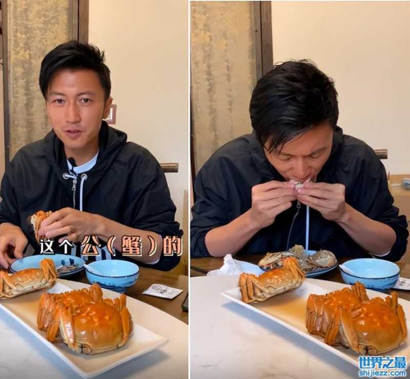 之后的谢霆锋点了一盘大螃蟹,那螃蟹个头很大,看着就很诱人。之后的谢霆锋随手拿起一个盘子里的螃蟹,熟练地拔下螃蟹所有的腿,之后教大家怎么开螃蟹,还介绍着认为这个公蟹的蟹黄更美味。打开螃蟹之后,一口一个用手抓着,吃得十分的过瘾。