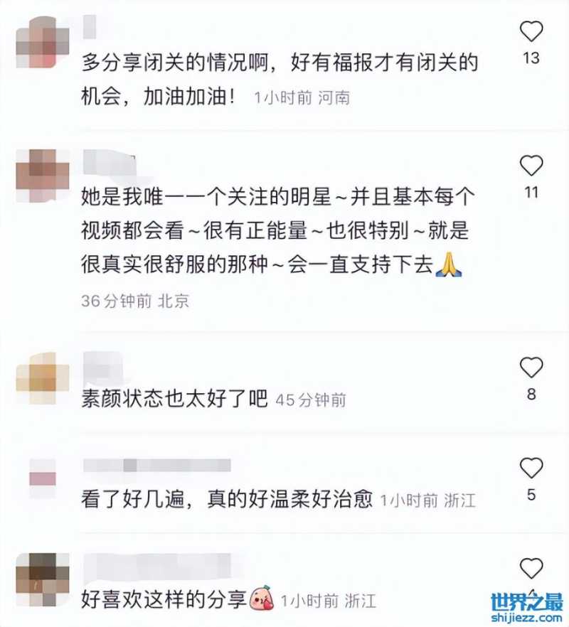 看见分享闭关生活的张静初,网友们纷纷在评论区留言。有的网友说,感觉张静初很真实而且很有正能量,每次都会被张静初的视频治愈,还会多看几遍。还有的则是夸赞她素颜状态好,果然付出就会有回报,这么好的状态都是自律的结果。