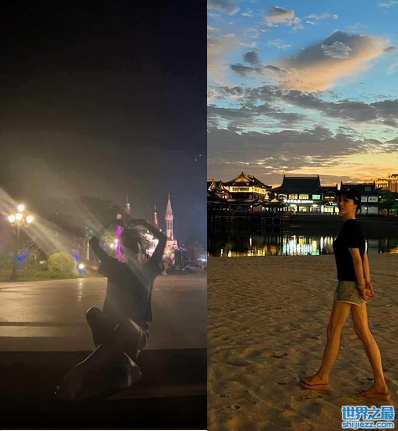 看着这些游玩的照片,就能感受到葛天的惬意,踩在软软的沙滩上,吹着晚风散散步,感受一下温柔的晚风。坐在台阶上拍照比造型,不怕脏,十分接地气。