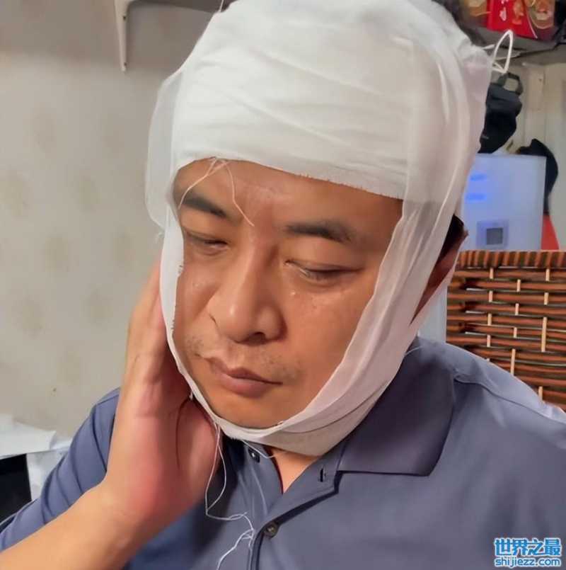 当时他的描述是有骨折,面部缝合近300多针,因为失血过多身体非常的虚弱,从画面之中来看也的确是如此。