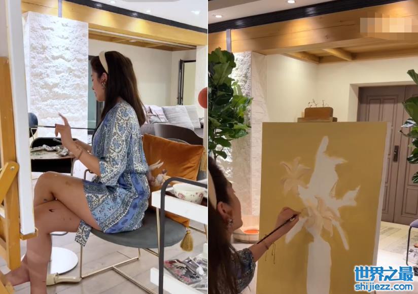 杨采钰豪宅内作画,穿超短裙背后大洞露内衣,腿上满是颜料太随性 ...