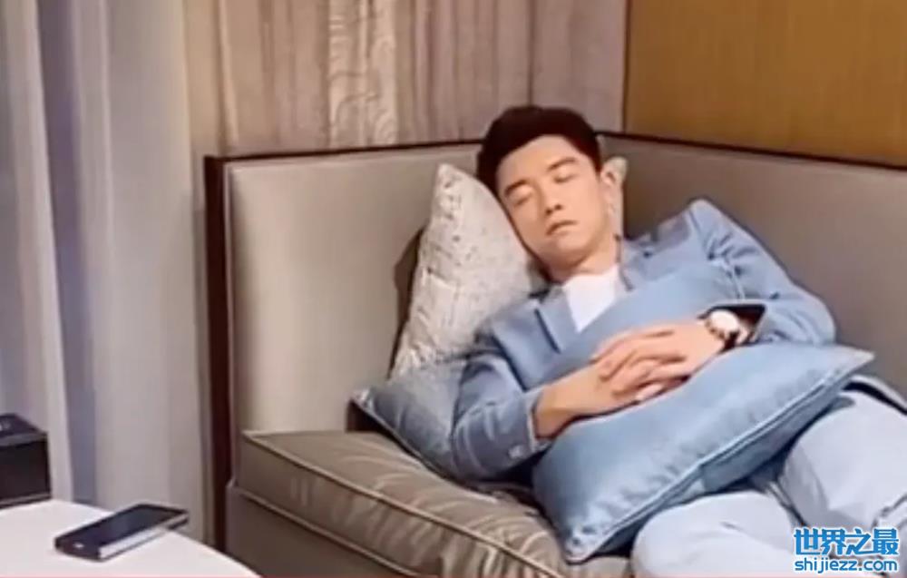 汪东城当时的睡姿也很多变,脑袋后仰、侧偏,甚至用鼻孔对着镜头,真是形象全无。