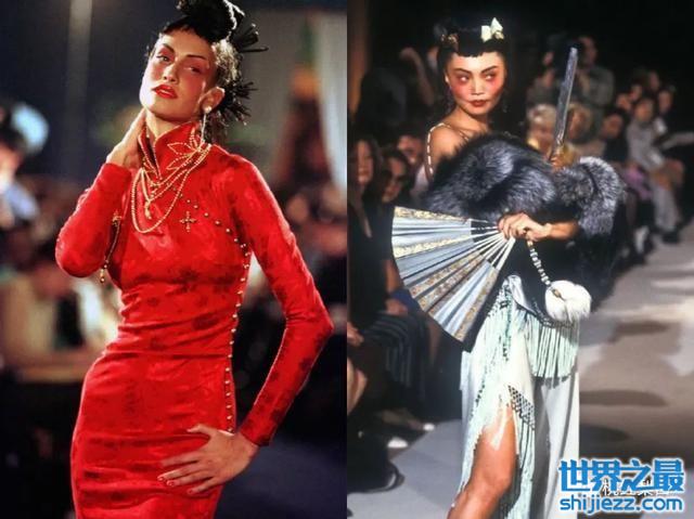 到了1997秋冬系列,更是直接以中国的招贴画以及三十年代上海的台历女郎为灵感设计,各种改良旗袍贯穿整场大秀。