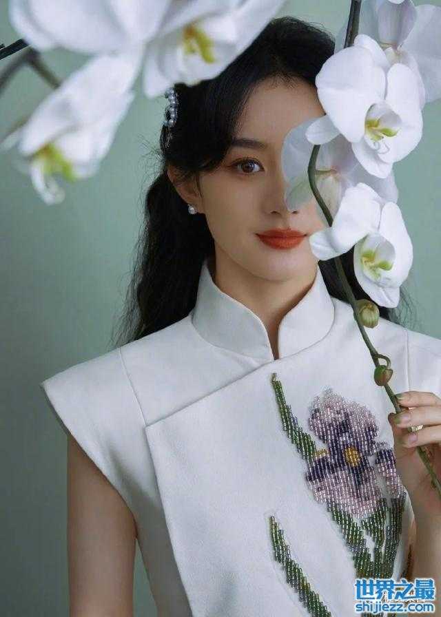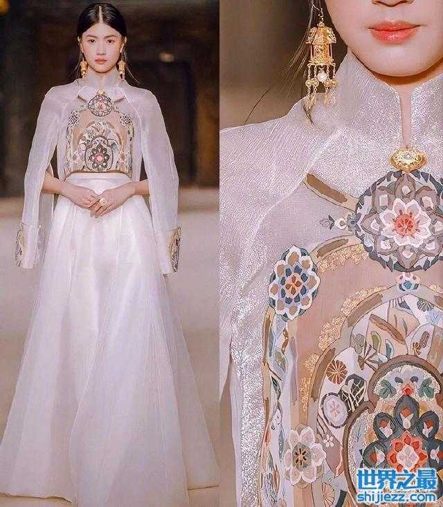 央视五四晚会时,赵丽颖也穿了一件白色改良旗袍。