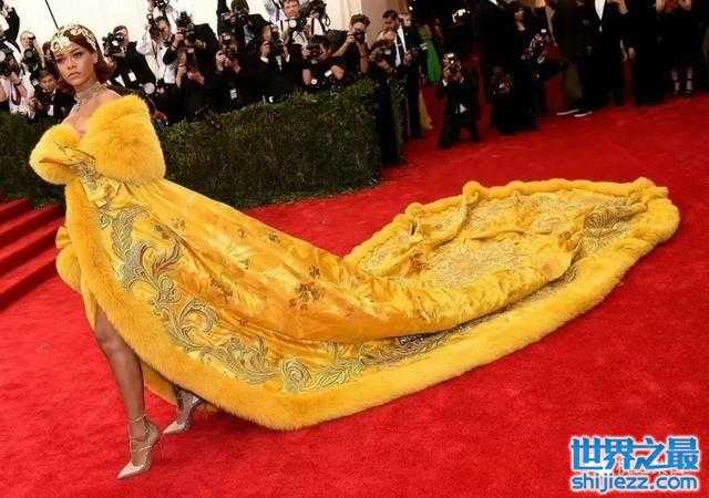 2015年MET GALA时,Rihanna穿的这件黄色“龙袍”,同样出自郭培之手。