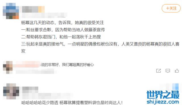这几天杨幂因为录制新综艺,网上时不时就会出现各种路透照,所以网友评论说杨幂真的很受关注,随便干点什么就上了热搜。还说杨幂真的很接地气,一点明星的偶像包袱都没有,不过就算提着塑料袋看起来依旧很时尚。