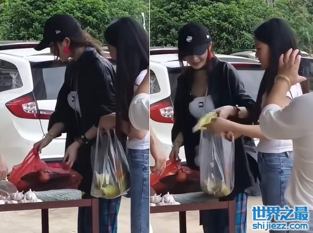 杨幂农村买菜太接地气,讨价还价动作熟练,穿白色背心秀丰满身材 ...