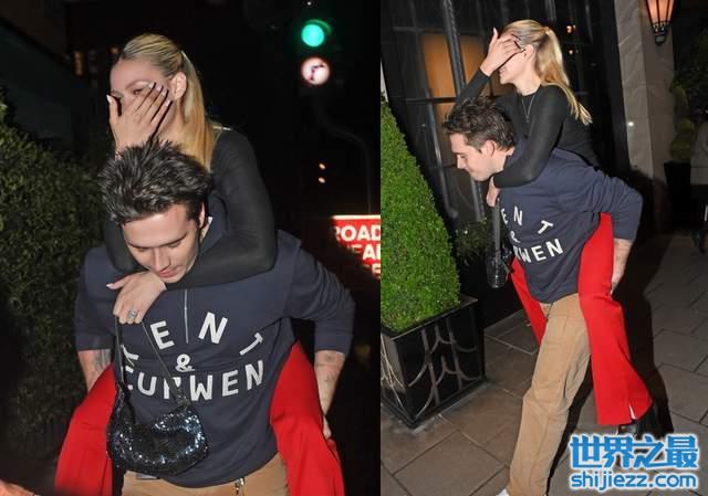 近日,有网友拍到了贝克汉姆的长子布鲁克林背着自己的老婆妮可拉外出逛街的照片。照片中布鲁克林将自己的老婆背在背上,但脸上并没有不快,反而是一脸的幸福。他的老婆则是显得有些害羞,一直用手把自己的脸挡住,不过脸上的笑容挡也挡不住。