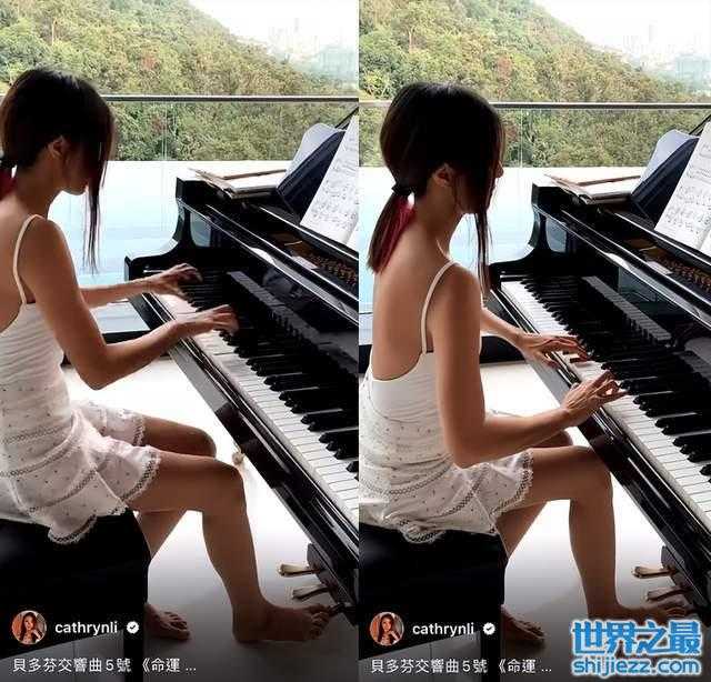 当天李元玲光着脚弹着琴,不过也不愧被称为钢琴女神,她的手指在琴键上飞快地舞动,呼吸停顿都做得十分到位,而且她的手指十分纤细修长,真的就是一双弹钢琴的手。从她的配文知道她正在弹奏《命运交响曲》轻重缓急把握得十分流畅。