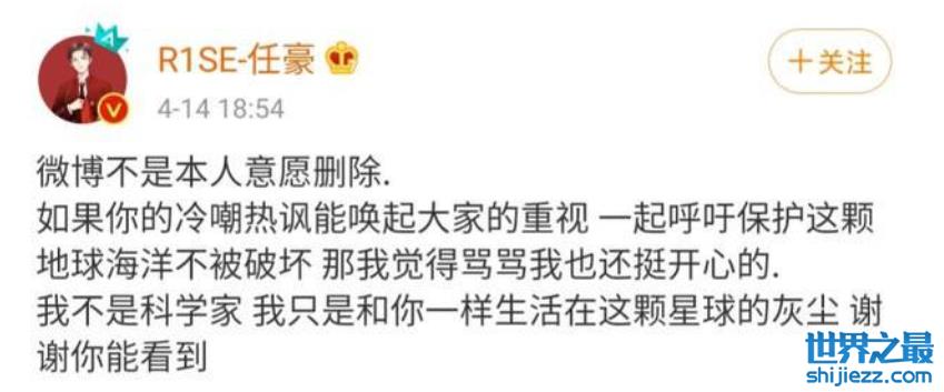 任豪甚至还因为一些不当言论被官方点名批评,那一条动态也是立马删除了。不过让人没想到的是,没过多久任豪又在社交平台上发布一条动态说之前删除动态不是本意,还说如果大家骂骂我觉得开心就骂吧,是真的让人摸不清他脑子里到底在想些什么了。