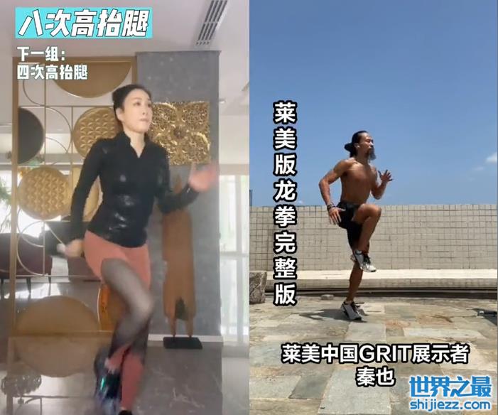钟丽缇紧跟着背景音乐的节拍,轻松做出几组跳操动作。她先是握紧拳头将手臂向前伸直,有节奏地摆动手臂达到减脂作用,恰好这一摆动也炫出她那傲人的上围。下一秒钟丽缇无缝接入另一组动作,丝毫不给自己放松的机会,四肢随着动作凸显出利落的肌肉线条。