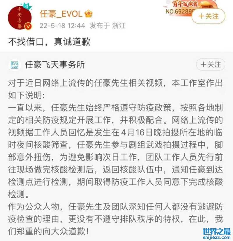 任豪澄清做核酸插队,表示有工作人员代排,没想到结局被打脸! ...