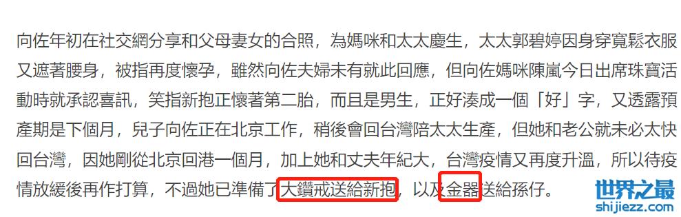 向太官宣郭碧婷二胎喜讯!孙子下个月出生,已备好黄金钻石做奖励 ...