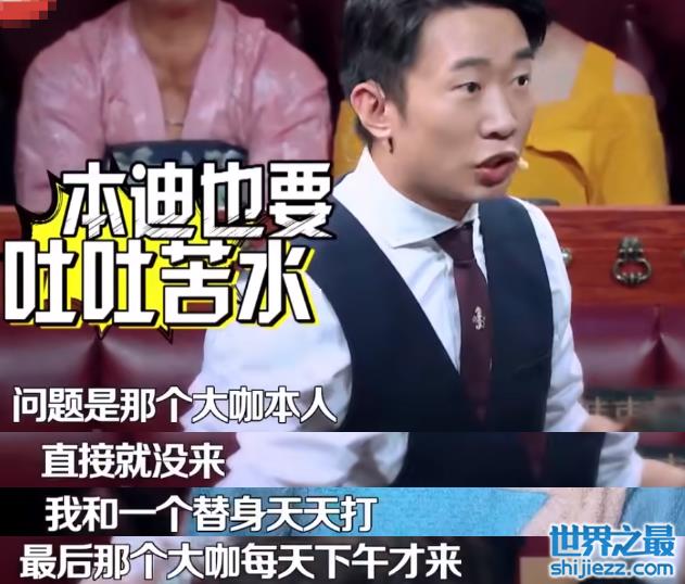 其实杨迪爆过的娱乐圈猛料,可不止这一个,曾经他在《火星情报局》曾爆料和某位大咖拍动作戏,大咖全程都用替身,来了就摆摆样子。没说出名字估计就是他仅剩的求生欲了。
