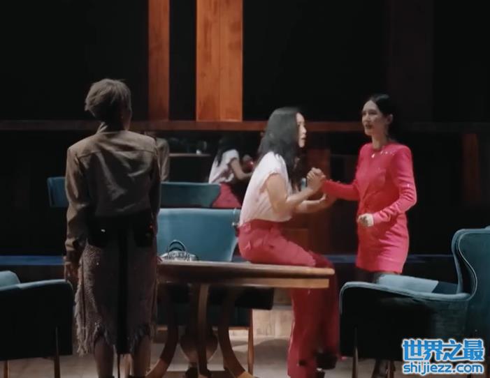 当谢娜一出场时,那英直接十分豪迈地坐到了桌子上和她聊天,动作豪迈又自然,看起来就是她平时会在生活中做的举动。