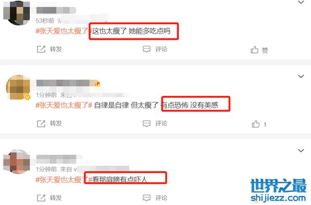 不少的网友们在看完了第一期节目之后,都纷纷忍不住表示,张天爱属实有点太瘦了,大家都觉得过度的骨感只有恐怖并没有太多美感。