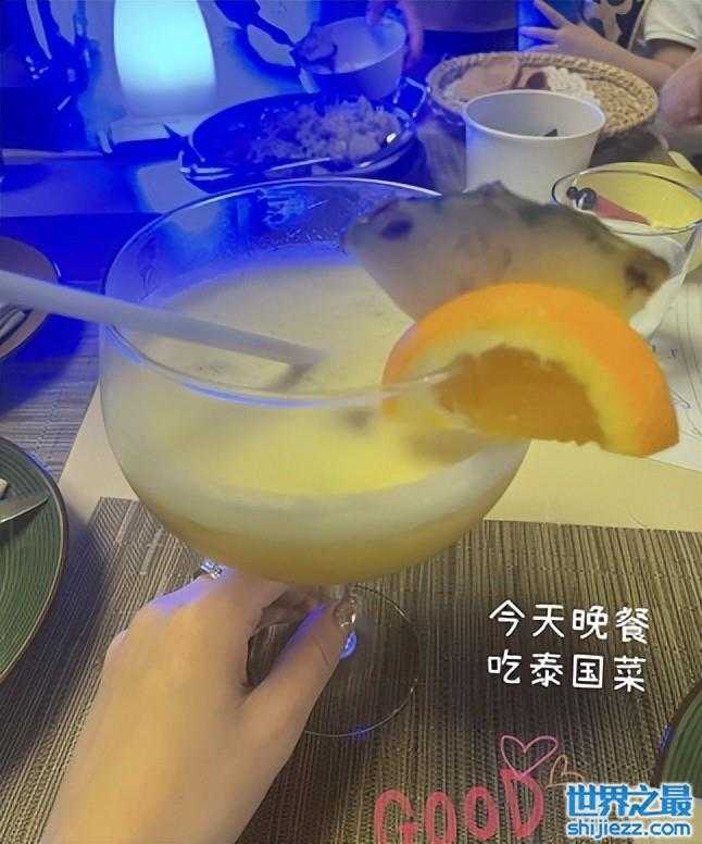 之后,方媛还晒出了自己吃泰餐的照片,图片中方媛单手端着杯子,杯子里盛满果汁,杯子旁的橙子很是精致,看起来非常美味。