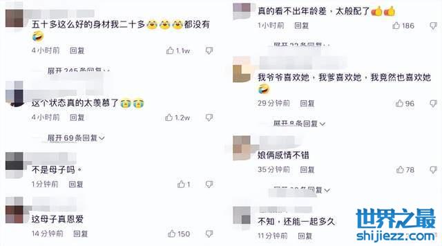 钟丽缇和张伦硕秀恩爱的这条视频下有许多网友评论,一部分很友好都在称赞钟丽缇50多岁了但状态依旧保持得很好,还说钟丽缇和张伦硕看不出什么年龄差。但也有网友的留言显得不那么友善,直言钟丽缇和张伦硕看起来像是母子。