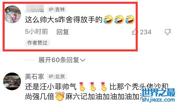 最有意思的是,他点赞的另一条回复是:“这么帅大S咋舍得放手的”,汪小菲这一波操作,一方面除了自夸之外,也弄不明白,抱怨为什么大S不要自己了。
